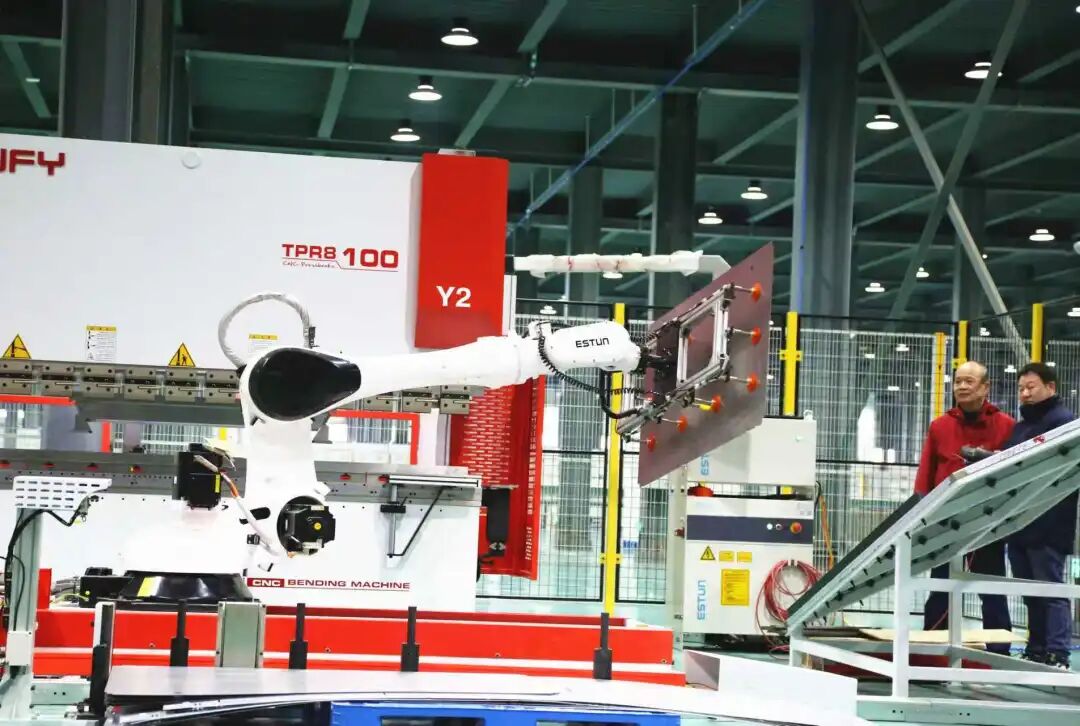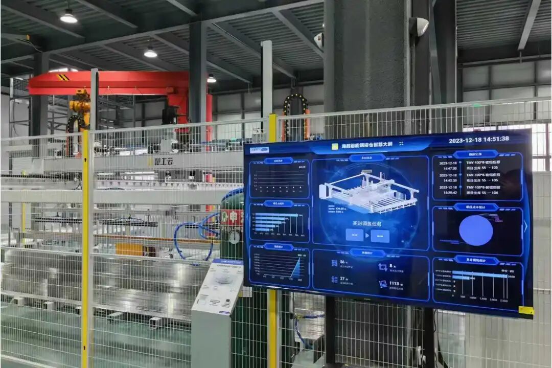 在该公司偌大的车间,只见激光切割机灵活移动,一块块小制件迅速产出;智能自动铜排仓里,一根根上百公斤的配件铜排自动归仓,还可轻松自动搬运至加工设备上;灵巧的机械臂旋转扭动……在生产车间入口处和每条生产线尾端,记者看到一个个大屏,显示着生产各环节的实时进展情况。