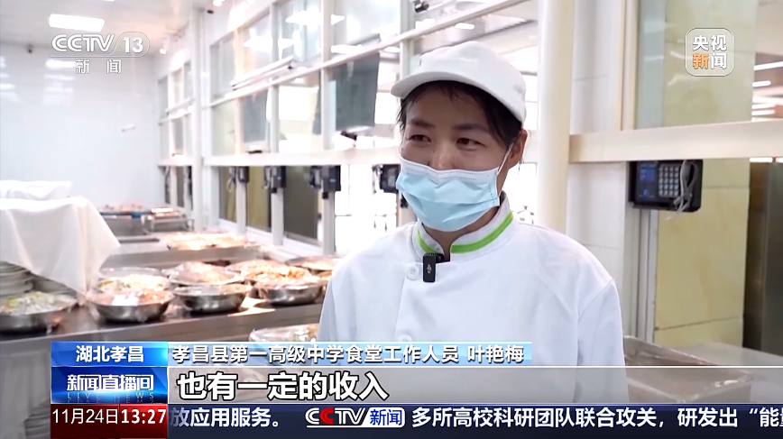 “她们在后厨也比较关注孩子营养搭配,卫生方面会好一些,我比较放心。”孝昌县第一高级中学学生家长邹志蓉说。