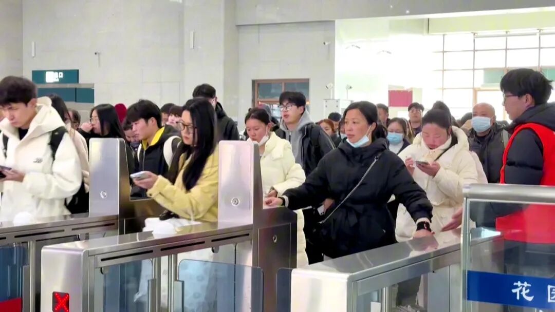 记者在人头攒动的花园火车站候车大厅看到,提着行囊的旅客们正有序排队检票,脸上洋溢着归家的期盼,每一个行色匆匆的身影背后,都是一份对家的牵挂与向往。
