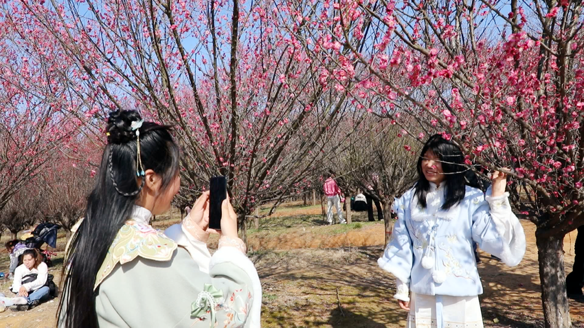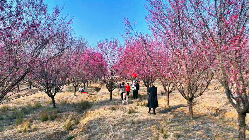 目前,园内数万株梅花已全面盛放,花期预计可持续至3月中下旬。当地经过多年培育,已建成4800多亩“春花秋色”生态景观,种植梅花、樱花、紫薇等多个品种,实现四季有花可赏,年均吸引游客超20万人次。