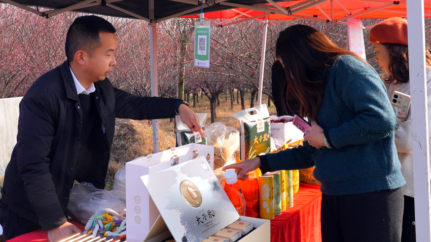 人气旺带来商机火,随着游客纷至沓来,周边农特产品销售也迎来旺季。“梅园花开后,每天游客都很多,我们的销售额十分可观。” 当地农户刘磊说。