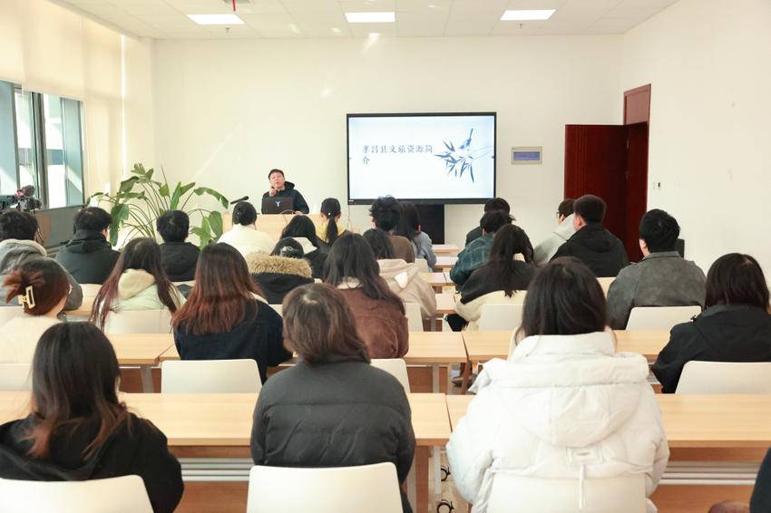 参观结束后,非遗创新设计实践授课在县文化馆非遗培训室开展。孝昌县文化馆馆长韩绍结合当地历史沿革,系统梳理了孝昌的发展变迁与文化积淀,围绕"名人、名景、名品、名地"四大核心文化资源,全方位展现孝昌地域文化特色。授课中,韩绍介绍了孝昌文创产品研发历程,现场展示了多款兼具文化内涵与实用价值的文创实物,解析如何将非遗元素融入现代设计。同时,他结合当前非遗文创开发现状,明确了文化馆的设计需求,为师生开展设计实践提供指引。