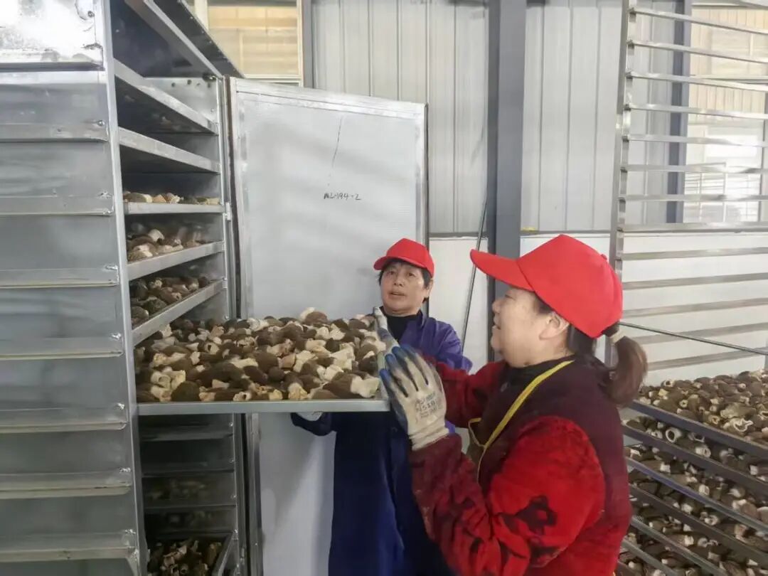 “菌盖不能破,菌柄不超过两厘米,分拣时眼睛要尖!”分拣区里,负责人穿梭在忙碌的工人中间,不时叮嘱。一筐筐鲜菌源源不断运出大棚,部分直供高端消费渠道,其余的直奔18公里外的烘干车间。