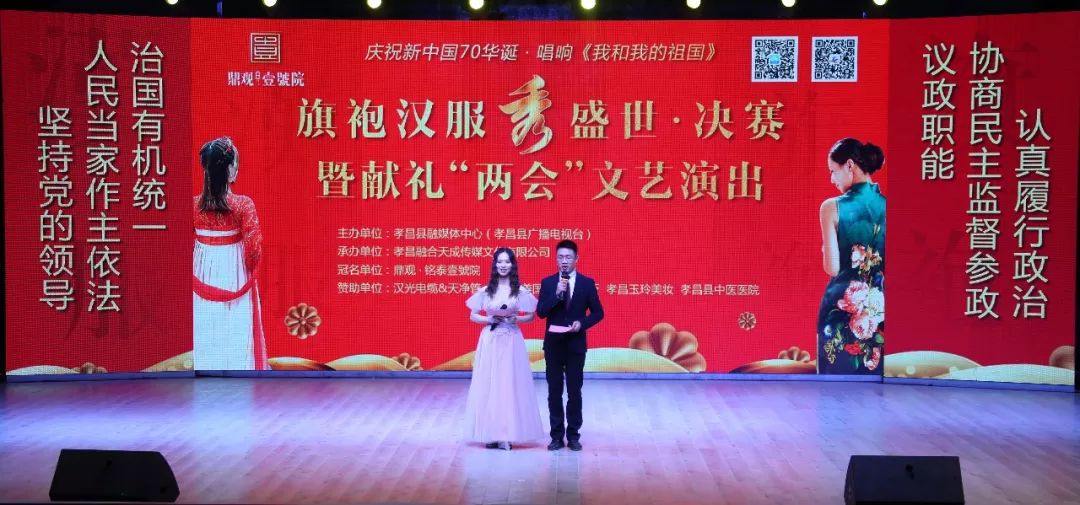 12月26日,庆祝新中国70华诞·唱响我和我的祖国2019旗袍汉服秀盛世决赛暨献礼两会文艺演出在孝昌一中大礼堂隆重上演。孝昌县融媒体中心全程直播了此次活动实况。