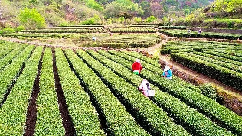 漫步在孝昌县湖北楚孝生态茶叶有限公司的茶叶生产基地,漫山遍野的茶树郁郁葱葱、纵横交错,翠绿的嫩芽矗立枝头,三五成群的采茶工们身背茶筐,穿梭在茶树丛中,嫩芽随着指尖轻快地落入篮筐,不一会儿,茶筐就装满嫩嫩的绿芽,呈现出一片青绿色。