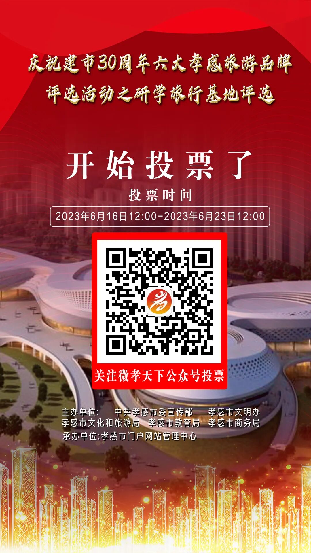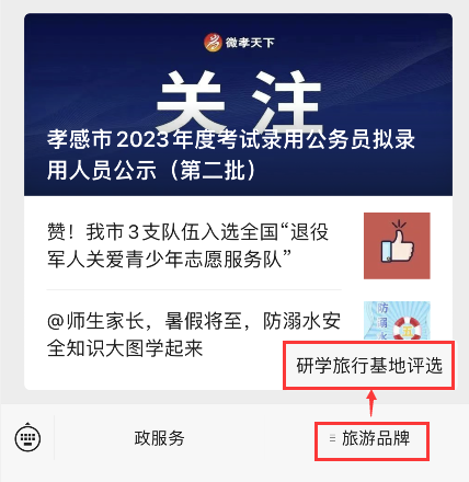 为认真贯彻落实市委关于宣传工作“抓活鱼、激活水、增活力”的要求,展示孝感经济社会发展变化,提升孝感城市形象,为庆祝建市30周年营造积极热烈的氛围,自四月起,在全市范围内开展六大孝感旅游品牌评选活动。