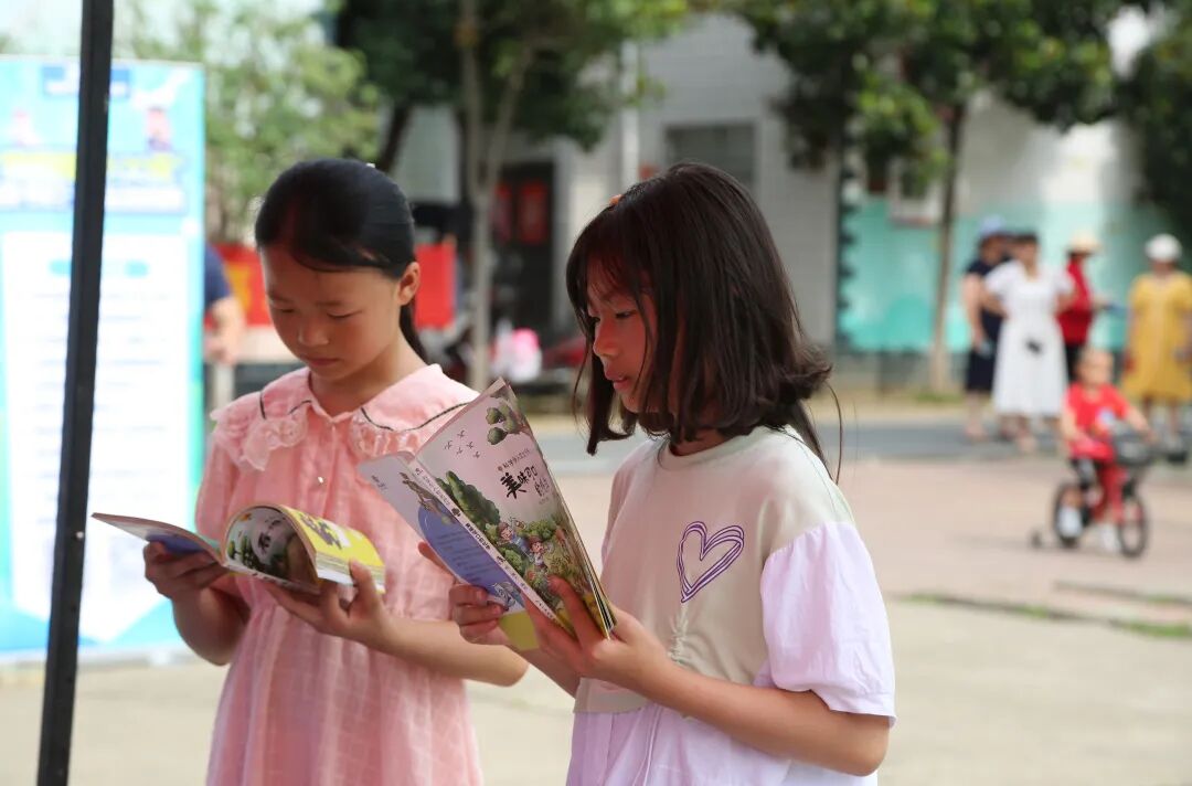 听说要举行和读书有关的活动,一大早,王店镇敦厚村小学五年级学生胡昕玥和胡安娜就来到了文化广场。她们说,闲暇时节,她们时常和父母一起到村里的农家书屋去借书看书,父母借阅农业技术类的书籍,她们则抽空看四大名著等文学书籍。