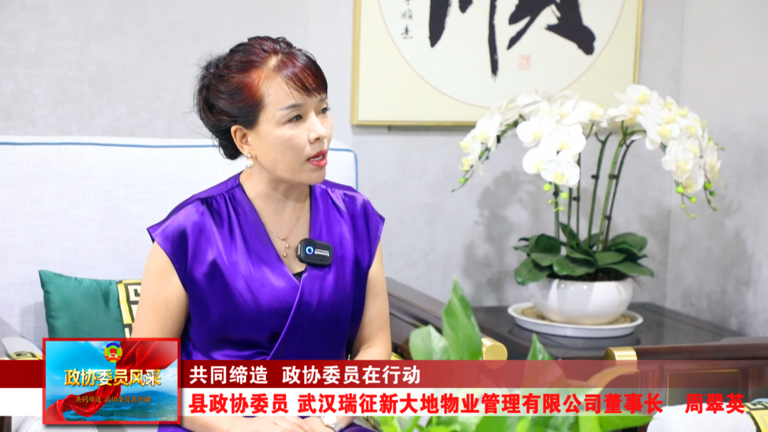 日前,我们栏目组采访了政协孝昌县七届委员会委员武汉孝昌商会执行会长武汉瑞征新大地物业管理有限公司董事长 周翠英一起来了解她的创业经历和履职故事。