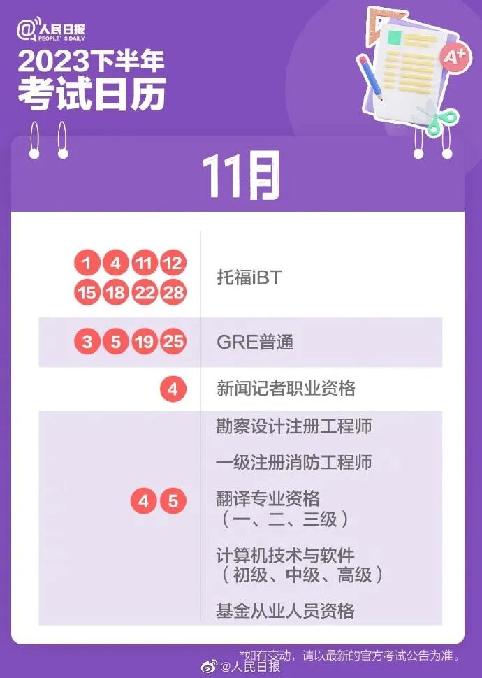 超实用!速存2023下半年考试日历 2023-07-02 08:25 0 2023已过半你的学习目标达成了吗?下半年可以参加哪些考试?全国英语等级考试注册会计师教师资格法律职业资格…收好这份2023年下半年考试日历做好日程规划提前准备,不留遗憾!↓↓↓ 来源:人民日报