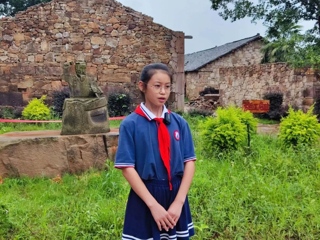 少先队讲解员讲解磨山村