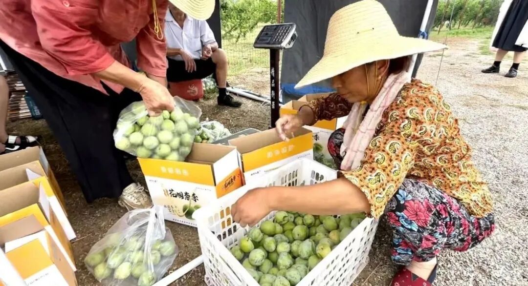 来到欧河村学晶蕾的百亩果园,这里绿意盎然,一颗颗硕大饱满的奈李挂在枝头,让人垂涎欲滴。这种外形像桃子、味道像李子的水果,区别于市场上常见的黑布李,花园奈李不仅皮薄肉厚,而且脆甜多汁、富含维C,是果中的优品。听说奈李开园,三五成群的游客穿梭在奈李树下,体验采摘的乐趣,将果实与健康一同采摘入篮。