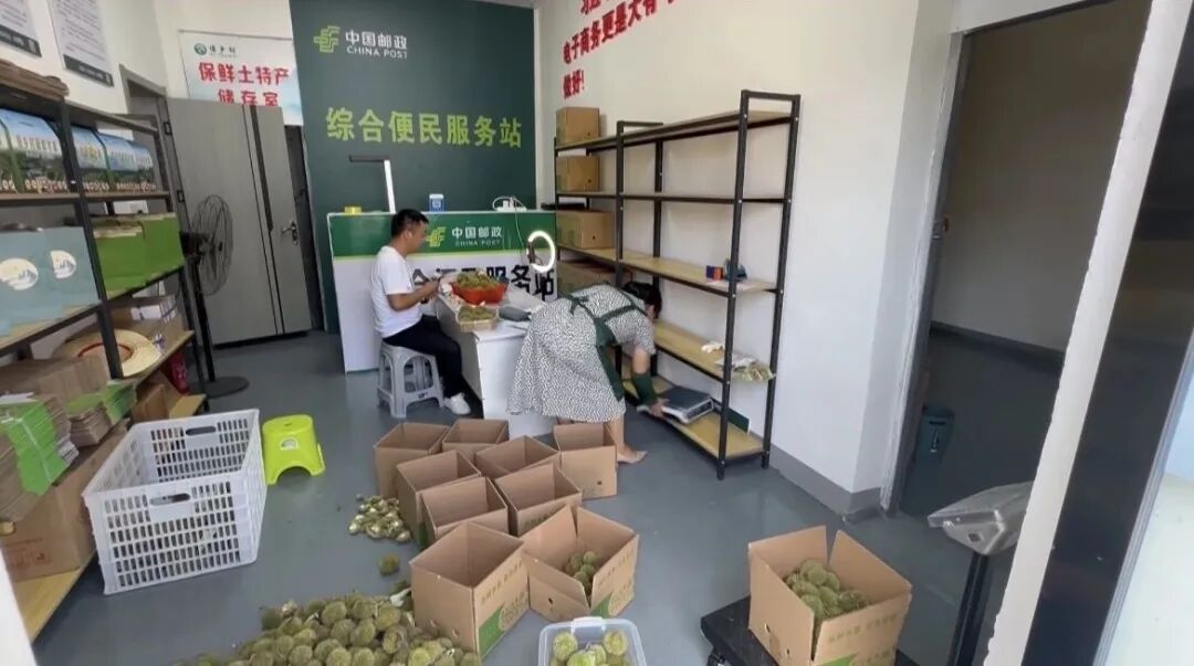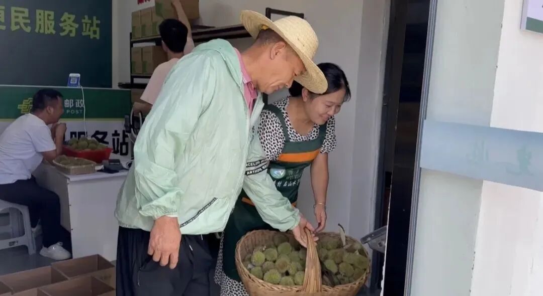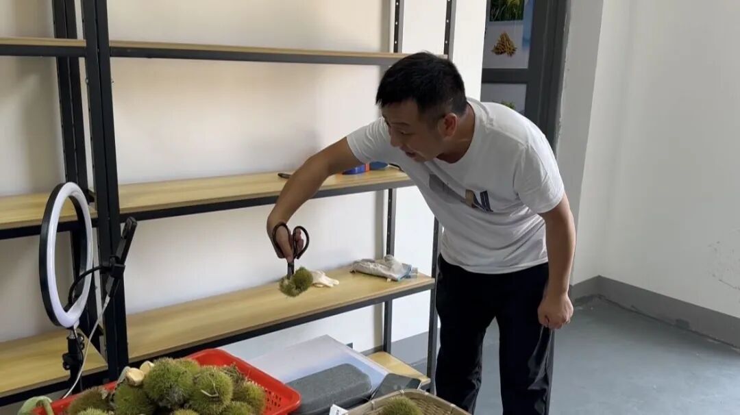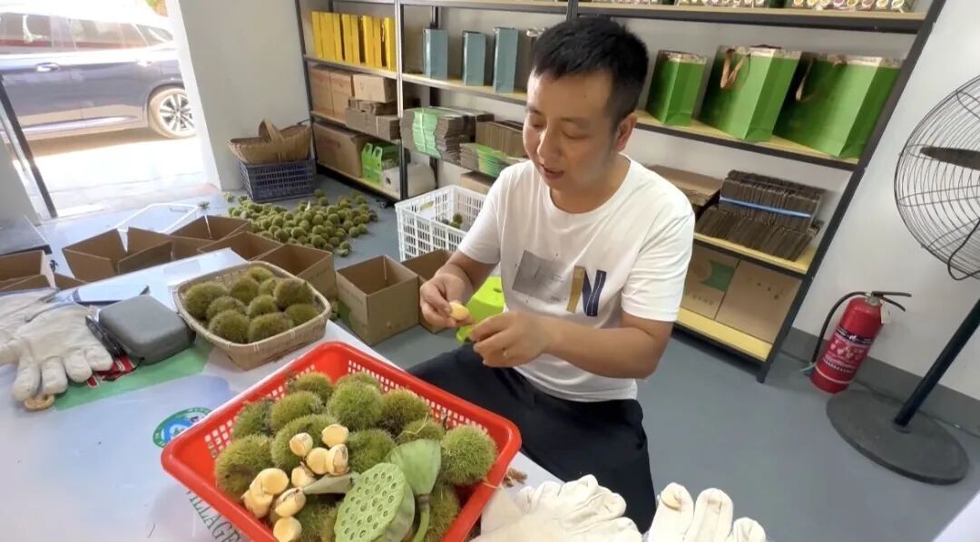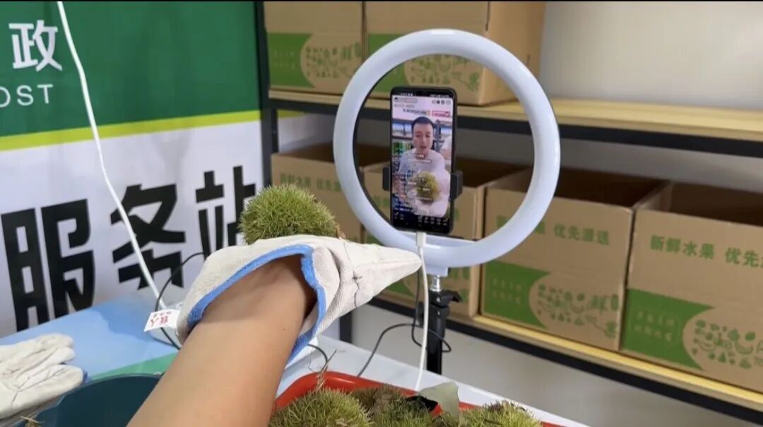 在悟乡村寄递物流服务点,村民杨俊成为直播间里的“带货王”。这边刚收购了村民的新鲜板栗,杨俊马上就在网上开启直播带货,现场售卖毛栗子,一系列操作十分娴熟,人气直奔电商平台带货榜首。