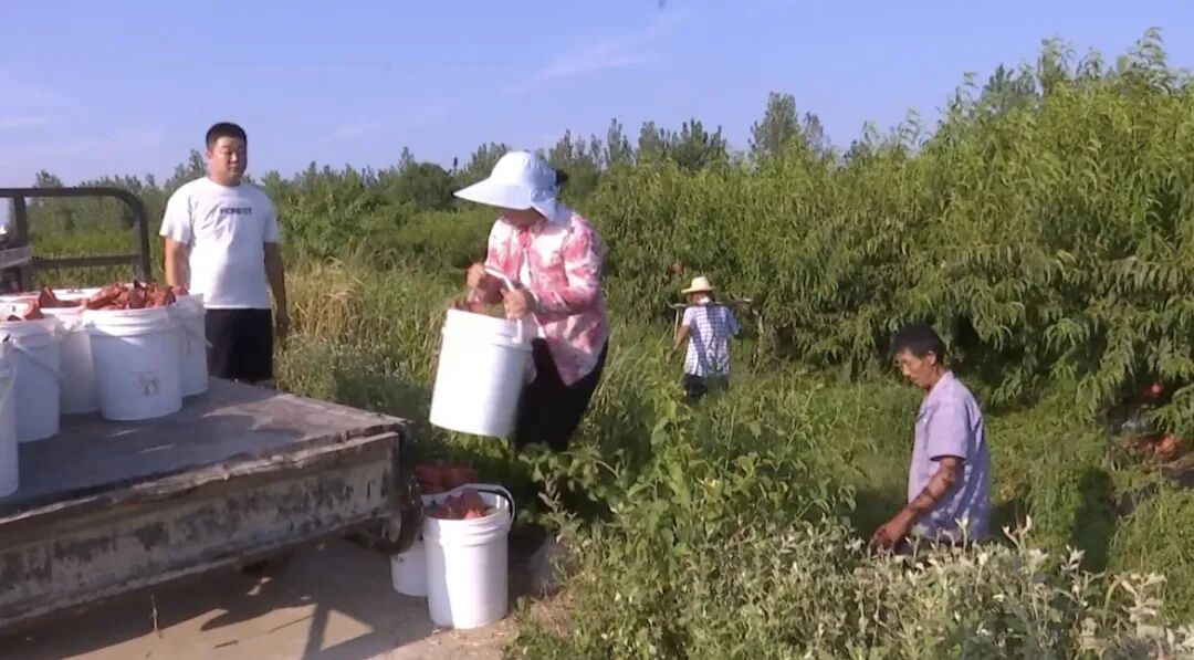 “我在这上班5年了,负责将桃子打包好装箱,一个月可以赚3000多元。现在事情都忙完了,准备下班回家带孙子。”邹岗镇紫云村村民陈先念说。