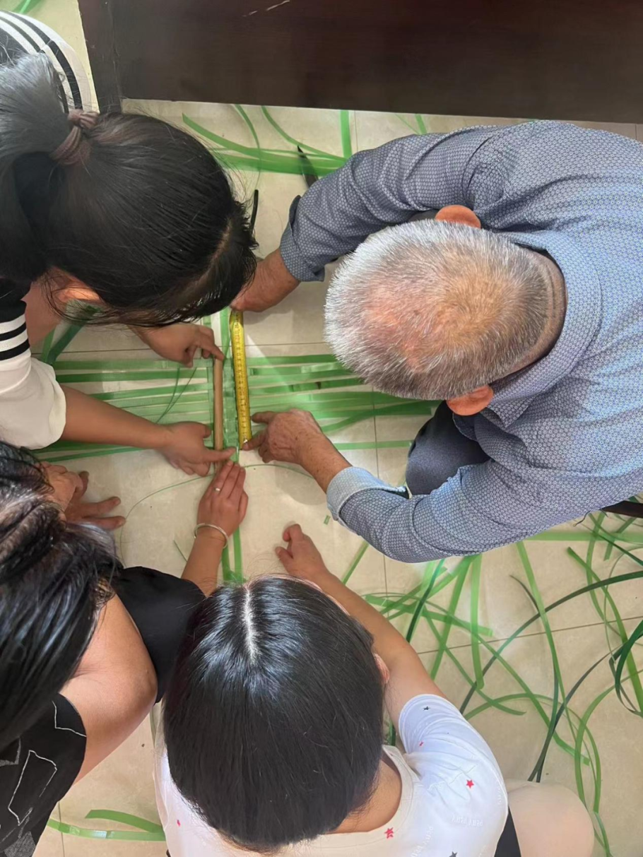 活动上,竹编老师唐顺利给大家讲解竹编的编织原理及技巧。唐顺利首先为大家介绍了竹篮编织的五道工序:“劈”——一条分成五条,“搭”——搭建篮底,“编”——编篮身,“刹”——刹篮口,“绕”——绕篮柄,然后,由村巾帼志愿者、普黑林公会志愿者现场分发材料,准备制作。