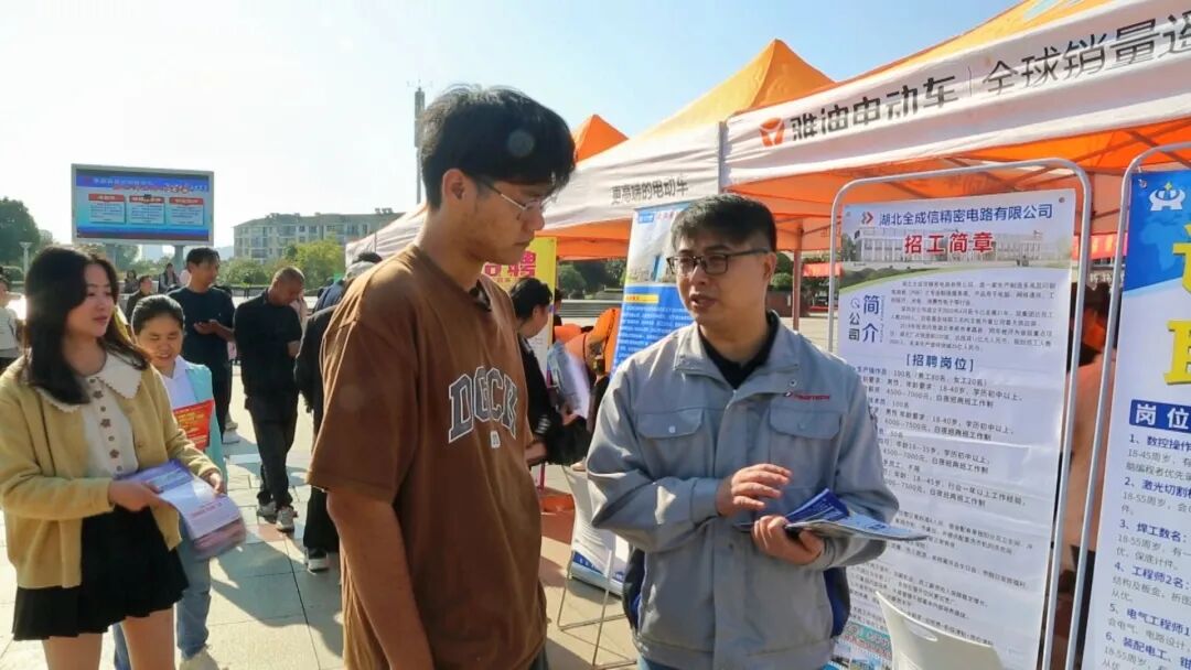 “今天来广场招聘,主要是招操作工和品质检验人员,为我们年底订单量激增的状况做好增产准备。今天面试人员相对比较多,目前已经收到了20多份简历,面试了有十多个人,确定的大概有10人左右,基本上已经达到了我们的招聘目标。”湖北龙腾电子科技股份有限公司人事部经理何耀法说。