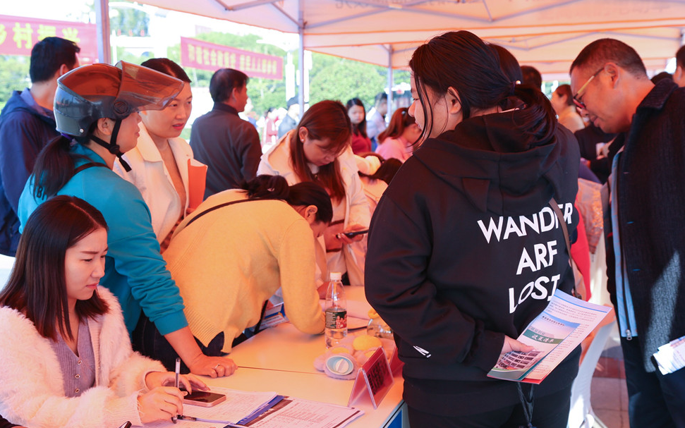 秋高气爽,人头攒动。在招聘现场,前来咨询应聘的求职者络绎不绝,咨询服务展台前,求职者一边浏览招聘信息,一边与工作人员沟通,了解岗位特点、薪资待遇等情况。有了就职意愿,就登记留下相关信息,积极寻找适合自己的工作岗位。