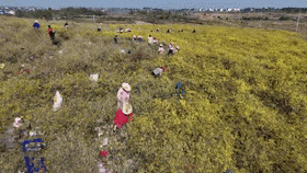 徜徉花海,菊花飘香。走进野菊花种植基地,放眼望去,成片的野菊花摇曳生姿,一朵朵、一簇簇,相映交织成画,把乡村点缀得格外美丽。村民们正分散在花间,忙着采摘、收割,现场呈现出一幅田园丰收的美好景象。