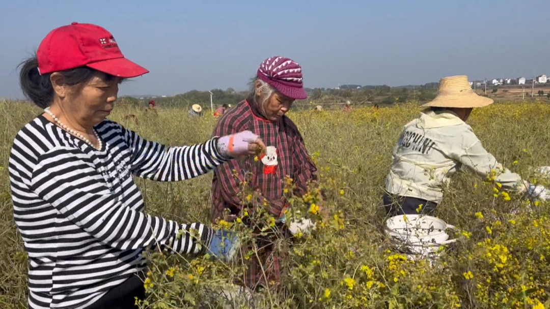 野菊花采收的季节是村民最为忙碌的时节,从野菊花的前期栽苗、除草、施肥、管护到后期采摘,野菊花种植基地为当地村民提供了家门口就业的机会,增加了收入。