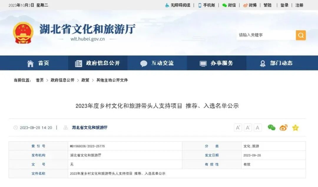 据介绍,湖北乡村文化和旅游带头人支持项目是省文化和旅游厅、省农业农村厅联合组织实施的面向基层一线的人才支持项目。