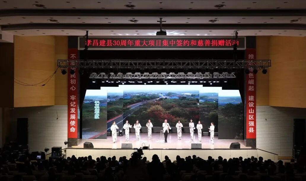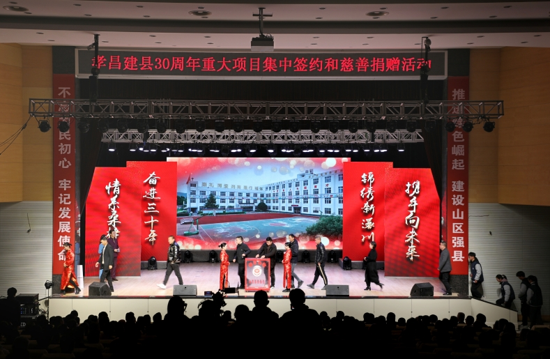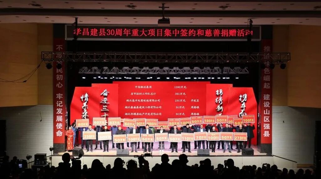 12月12日,“奋进三十年•锦绣新澴川”孝昌县孟宗文化旅游节暨建县30周年重大项目集中签约和慈善捐赠活动在孝昌会堂隆重举行。