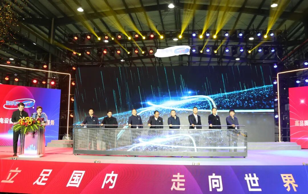 参会领导及嘉宾上台共同推杆,见证海越(湖北)电气股份有限公司开业投产。