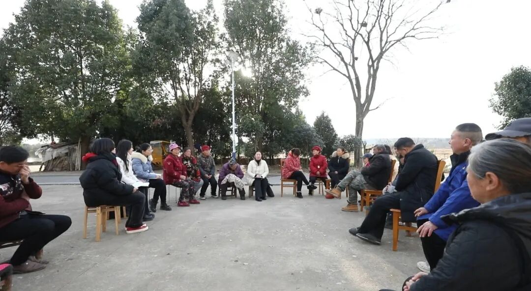 在陡山乡大庙村农家小院门口,试点工作专班人员与村民们围坐在一起,大家你一言我一语,就美丽村湾建设争相发言,现场聊得热火朝天。