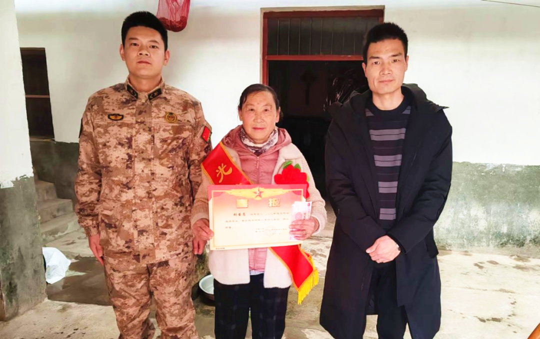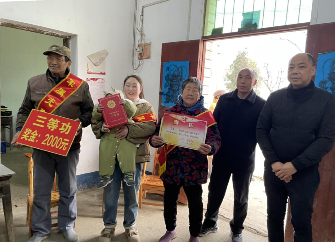 军营建功业,喜报家乡传。为进一步弘扬拥军优属的光荣传统,鼓励现役军人在部队安心服役,1月15日,孝昌县花西乡退役军人服务站站长走进现役军人丁亮的家中,为其家属送上“三等功”立功受奖喜报和慰问金,佩戴光荣绶带,并对受奖军人在部队取得的荣誉表示祝贺,让军人家属真正感受到“一人立功、全家光荣”的自豪和喜悦。
