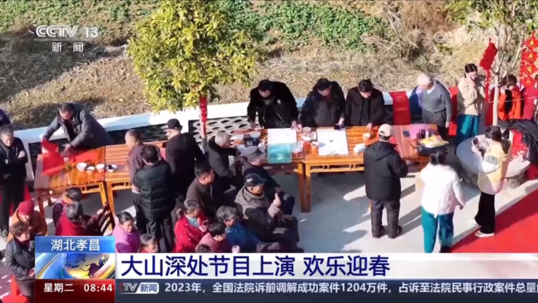 在湖北孝昌县小悟乡田堂村,一场“孝老爱亲”文化惠民活动正在上演。