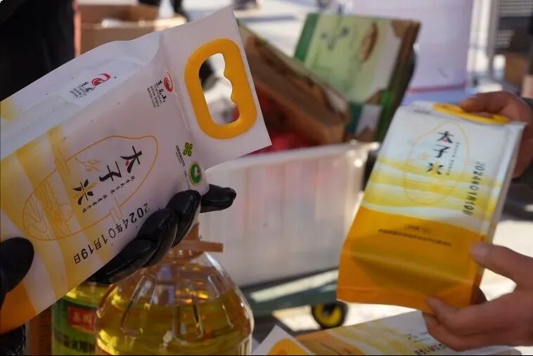 活动现场十分热闹,前来添置年货的群众络绎不绝,在摊位间穿梭,一边挑选着年货,一边交流着春节的准备情况,商户们忙着为顾客介绍商品、打包、称重。