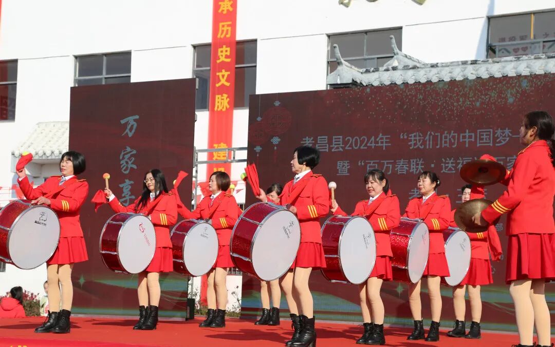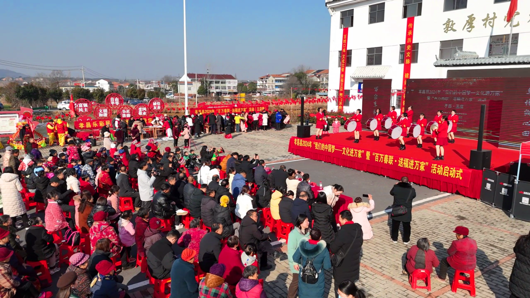 大红灯笼挂起来,喧天锣鼓敲起来,喜庆的对联送起来,欢快的旱船划起来……1月25日,在孝昌县王店镇敦厚村村委会广场上,一场文化气息十足的“年味盛宴”拉开了孝昌县2024年“我们的中国梦——文化进万家”暨“百万春联·送福进万家”活动的序幕。