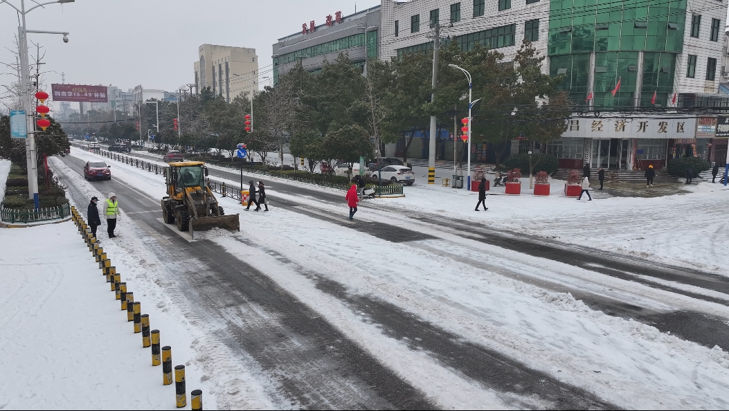 截至目前,全县各乡镇区和城管、交通、交警等职能部门共出动融雪撒布机、平地机、雪铲等各类清雪机械300余台次,1.2万名干部群众参与扫雪除冰行动。
