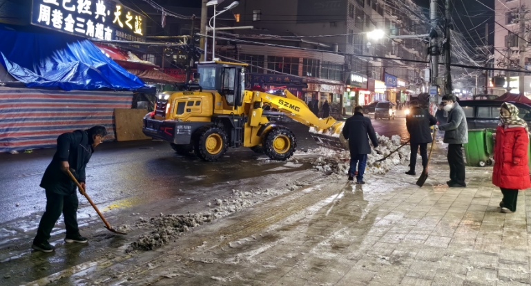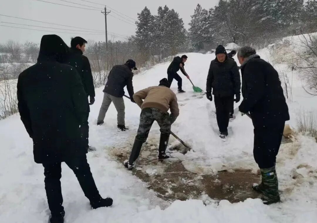 季店乡坚持“快”字当先,迅速动作,统筹各方力量,组织机关全体党员干部职工、应急队员、志愿者、四有人士对乡域内重点路段、单位庭院等开展铲冰除雪工作。
