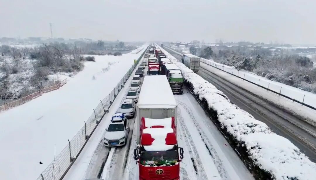 “感谢咱们湖北孝感的这些村民,京港澳高速从昨天夜里堵到现在,当地村民看到之后带着方便面跟开水免费发放,当我下车问多少钱一盒的时候,他们说‘免费的,不要钱’,感谢你们了啊!”2月3日,受冻雨暴雪天气影响,孝感市境内部分高速路段出现大量车辆滞留,一些滞留在京港澳高速孝昌县小河镇顺水村路段的司机、乘客在社交平台上发布了自己拍摄的视频,感谢附近村民对大家的无私帮助。
