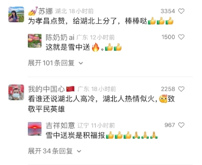 “大雪无痕,人间有爱!”“不是说湖北人很高冷吗?”“湖北人高冷的外表里蕴藏着一颗善良温柔的心”……2月3日下午1点多,京港澳高速孝昌县小河镇段已恢复通行,热心村民也已各自回家,但这些视频在网上迅速传播,一夜之间总浏览量突破1亿+,全国各地网友纷纷在视频下留言点赞湖北人“藏在骨子里的善良”。
