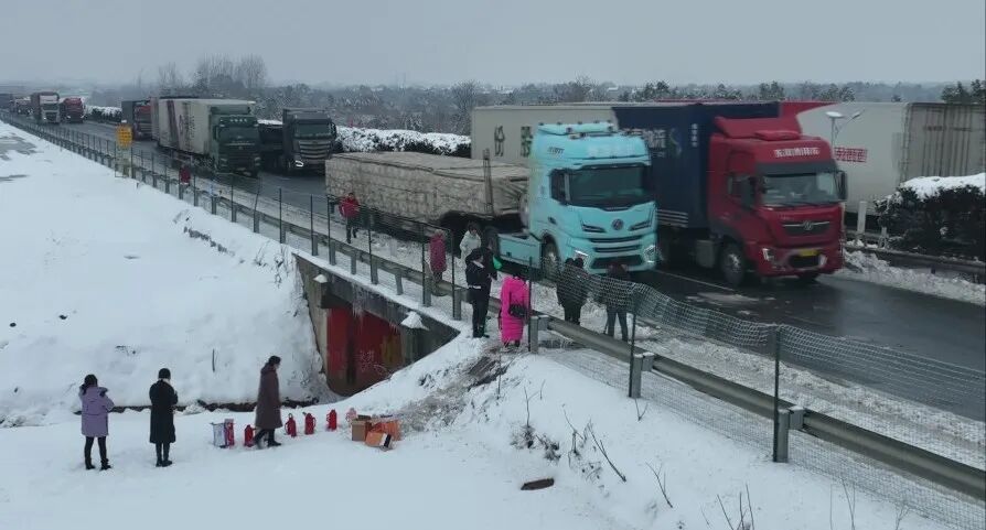 2月3日,低温雨雪冰冻天气导致多处高速路段临时封闭,在京港澳高速路小河镇段、京珠澳高速孝昌县王店镇段,滞留了一些过往车辆。