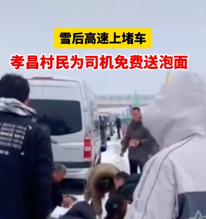 孝昌县小河镇、王店镇高速公路沿线村两委干部发现一些返乡老乡被大雪滞留在高速路,迅速作出反应,开展“寒冬送温暖、封路不封心”送温暖活动。王店镇东河村村干部黄裕珍与村里十余名党员村民自发组织起来,在村里小卖部就近购买了仅剩的两箱泡面,带着十几壶自家烧开的饮用水,顶风冒雪分发给滞留在高速路上的返乡人员。