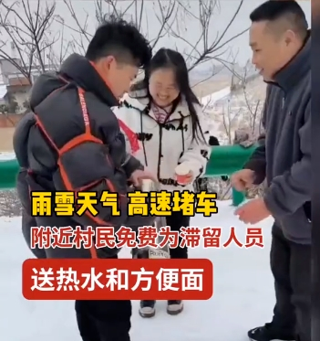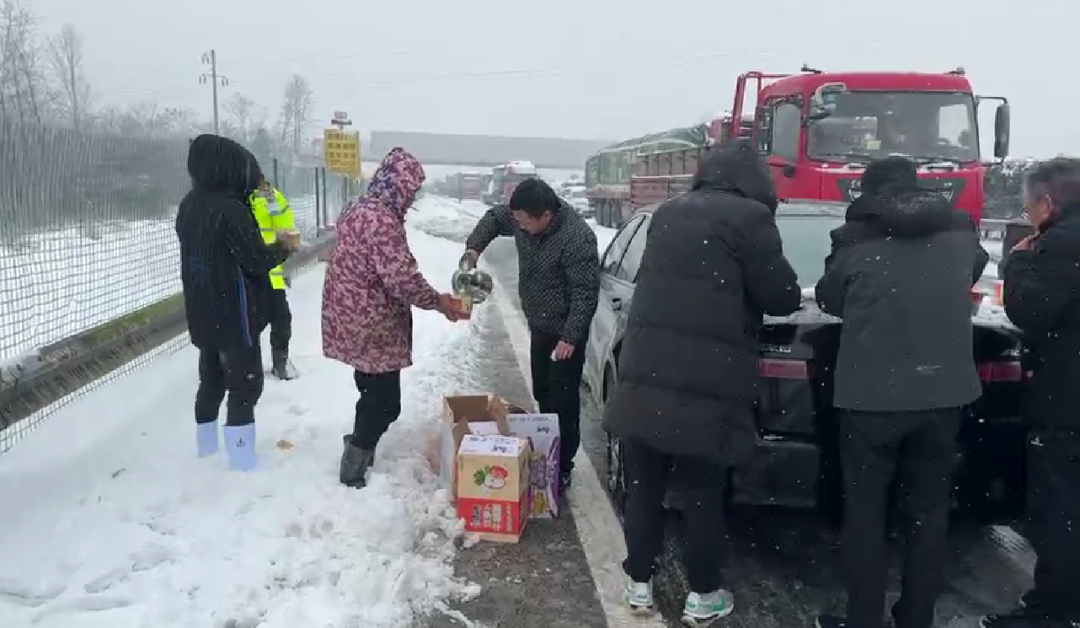 小河镇曙光社区村干部邱根和10名村民一起,在上高速路应急出口设立“温暖服务站”,给120余名司乘人员提供免费的热水和泡面。不仅如此,不少热心的村民陆陆续续地自发加入援助。