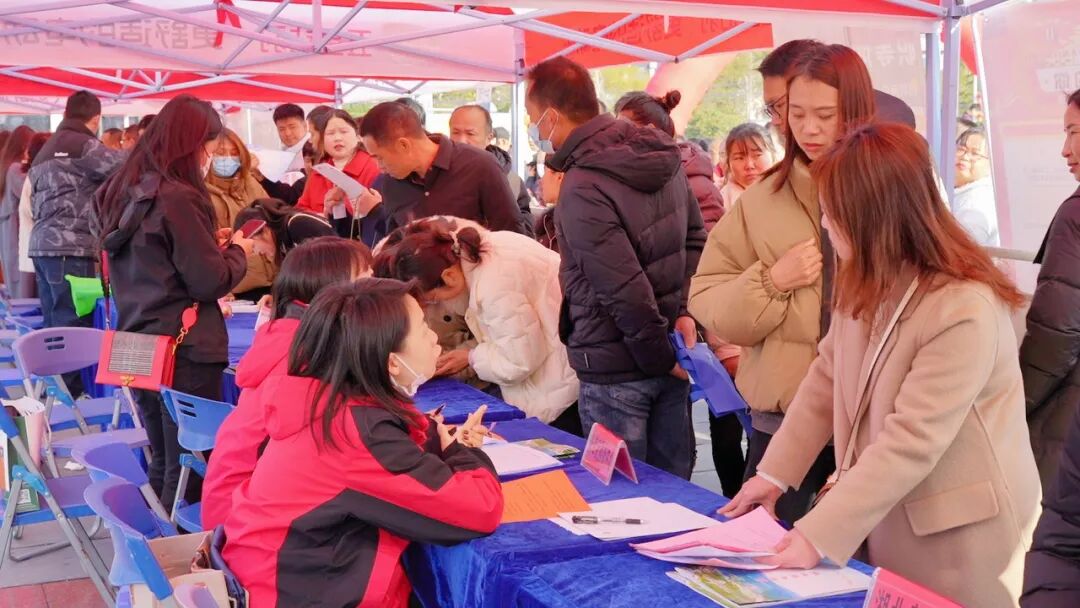 上午9点,招聘会现场人头攒动,求职者穿梭在各个企业招聘展位,认真了解企业招聘信息,寻找适合自己的工作岗位,询问工作待遇情况,填写就业意向表。大家往来于各企业咨询服务台,了解企业用工、薪资、待遇等情况,希望在新的一年里能在家门口找到一份称心工作,为家乡发展,也为自己和家庭拼搏奋斗。