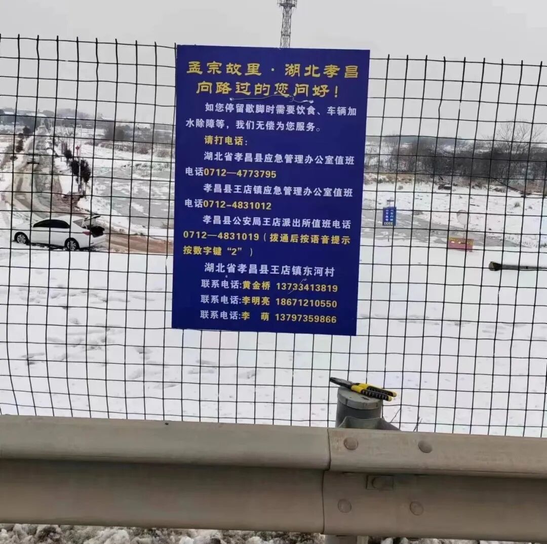 为更好的服务于高速司乘人员,孝昌从小处着眼,从细处入手,在京港澳高速公路沿线村湾安装温馨提示牌200余个,设置暖心棚,各相关乡镇人民政府和临近村庄联系电话都公布在上面,为过境临时停靠人员提供酒店信息、医疗救助、车辆维修和高速路况等咨询电话,尽一切努力保证过境孝昌旅客顺利出行。