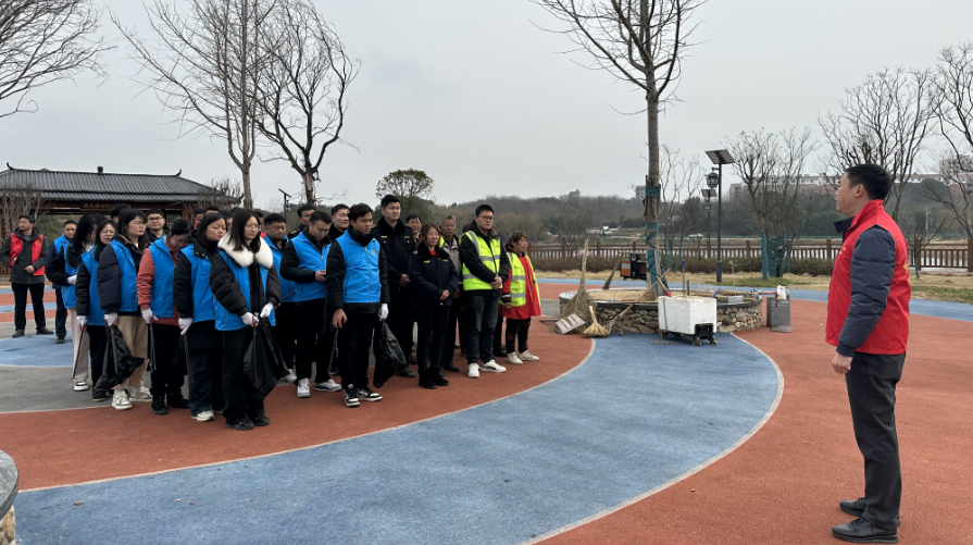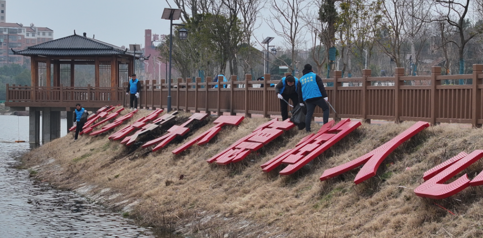 在周巷镇新龙湖新时代文明实践活动广场,40余名镇党员干部、志愿者、环卫工人身穿红马甲、蓝马甲和绿马甲,手持火钳、垃圾袋等工具,分工协作,相互配合,针对新龙湖广场文化健身活动场地、河道两岸及花坛路肩两侧的杂草、白色垃圾等杂物进行清理,赢得过往群众点赞。