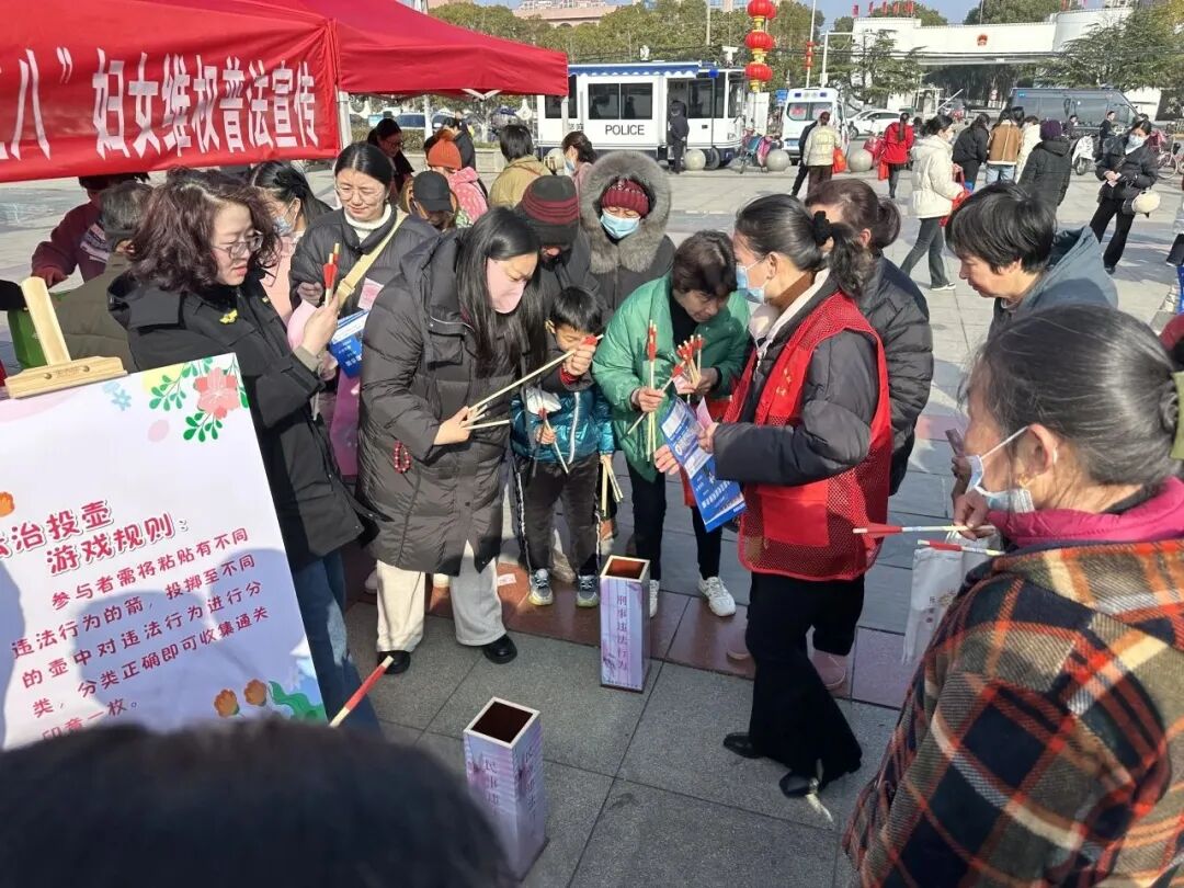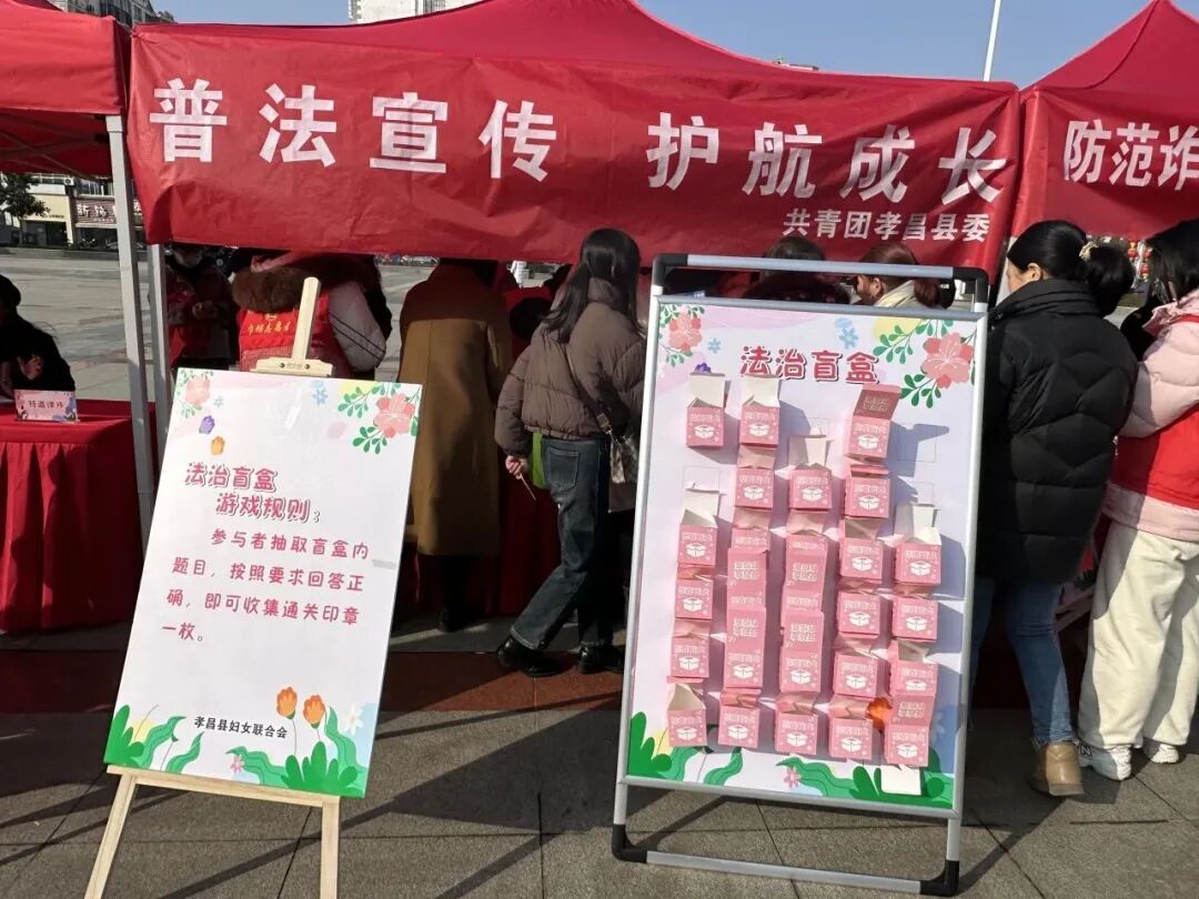 此次活动的主题为“建设法治孝昌·巾帼在行动”,活动共设置了六个区,包括签到区、宣传区、咨询区、游戏区、拍照打卡区、兑奖区,让群众既能免费咨询法律问题,又能沉浸式体验普法游戏。