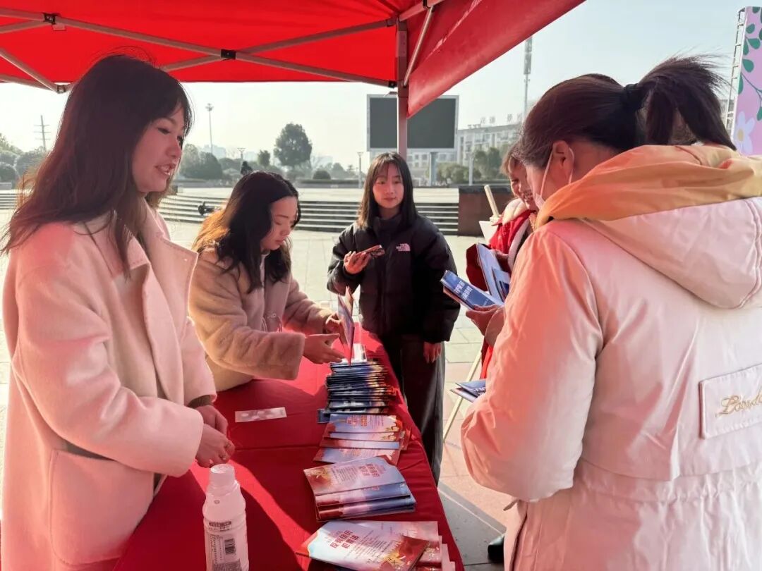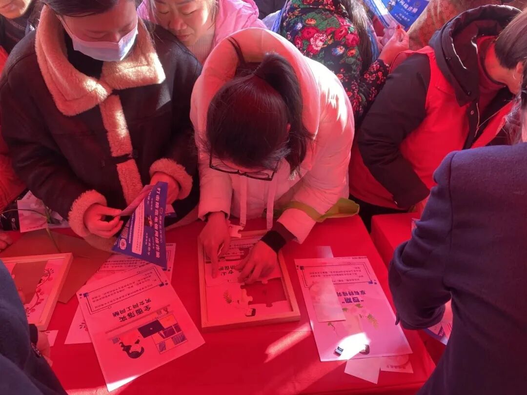 在政策宣传区的普法摊位上,工作人员为群众分发普法宣传手册,用心为群众讲解普法知识。现场人流如潮,妇女群众纷纷根据自己的需求去往不同的摊位学习咨询法律知识及相关政策。