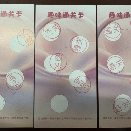 每完成一项小游戏,工作人员就会盖上1枚通关印章,集齐3枚以上就可以兑换奖品。
