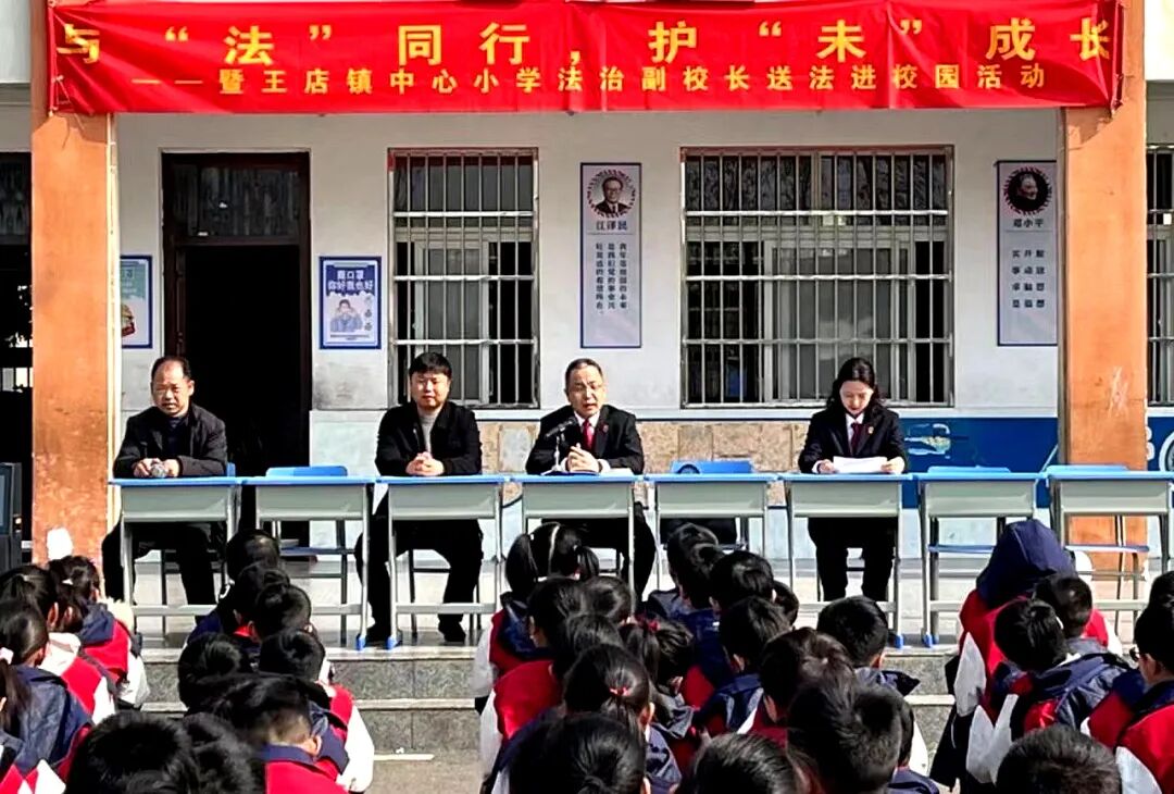 在王店镇中心学校,孝昌县人民法院党组成员、副院长胡雷以“修身立德与法同行”为主题,通过以案说法、办案感受等,向在场的同学们介绍了典型案例和法律规定,引导同学们尊法、学法、守法、用法,护航未成年人健康成长。