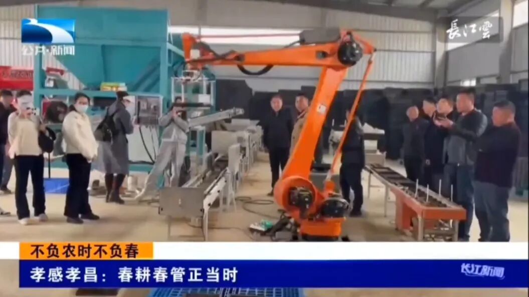 在花园镇克勤农机专业合作社早稻育秧现场,“码垛机器人”正在育秧生产线上忙碌。机械化育秧省秧田、秧龄短、种子均匀且出苗整齐,大大提升了育秧效率和秧苗质量。技术人员还结合当前小麦、油菜的苗情长势、田间状况等生产特点,进行现场指导,实地讲解田间管理技术措施。