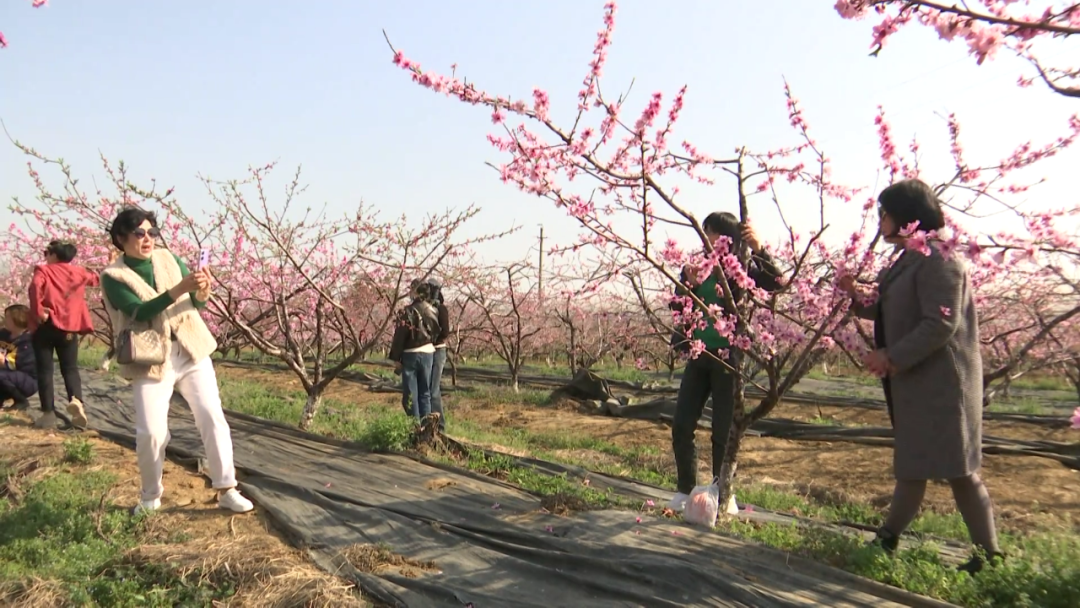 “看到这么大一片桃花,让人心情很愉悦,赏心悦目。”游客王丹说。