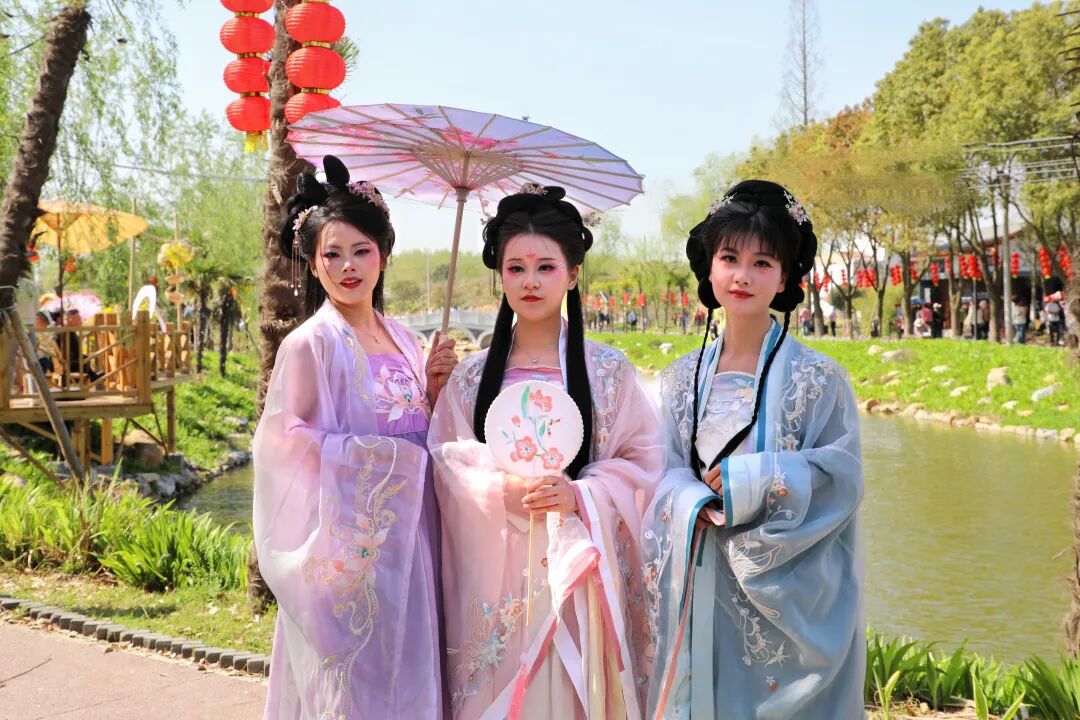 “十二花神落人间,一半风雅一半仙。”伴随着古典的音乐,十二花神身着汉服踏春而来,仿佛“步”入画中,衣袂飘飘,翩若惊鸿,构成花朝节一道靓丽的风景线。众多汉服爱好者也参与到花神巡游队伍中,共赴一场古与今的花朝盛会。