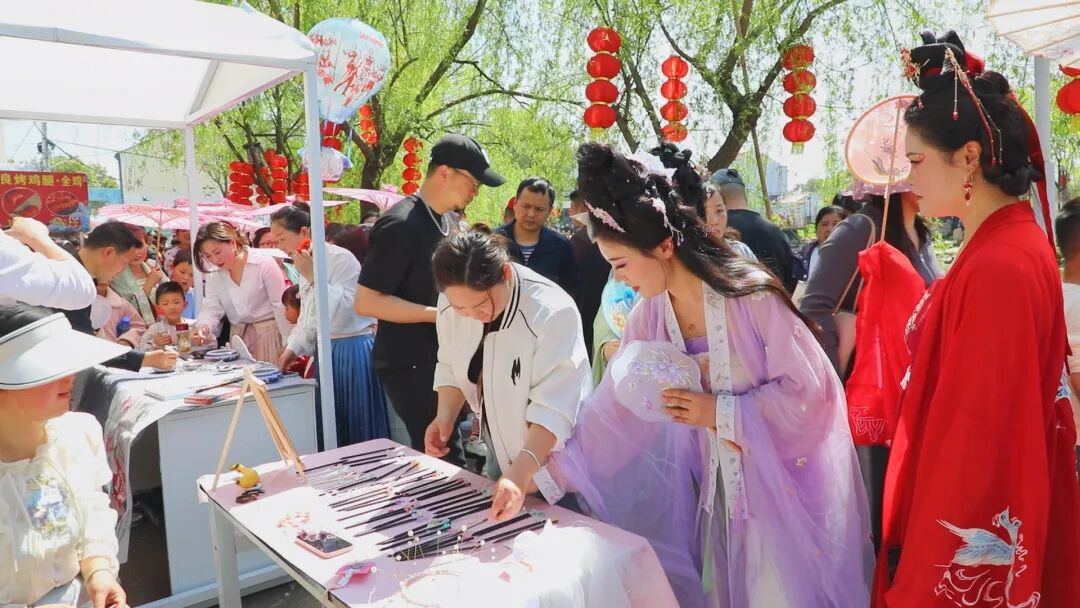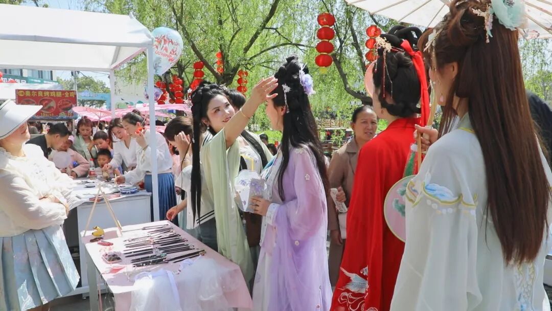 河畔边,国画、手工编织、剪纸……琳琅满目的春日市集,绵延壮观,宛如一幅现代版“清明上河图”,让游客“沉浸式”地感受湖北孝昌花朝文化魅力。