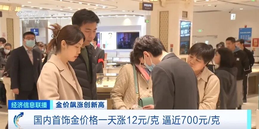 国内首饰金价格一天涨12元/克 逼近700元/克