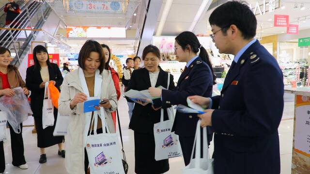 活动中,孝昌县税务局以大型商超为主阵地,通过悬挂横幅、摆放展板、开展税收咨询、“税费政策知识”有奖答题、发放宣传资料等方式,重点宣传解读近期新出台的税费优惠政策,吸引了不少往来市民的驻足。针对大家提出的涉税问题,税务干部们热情地逐一予以解答。